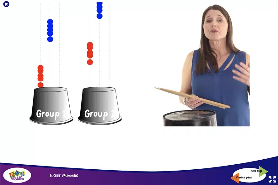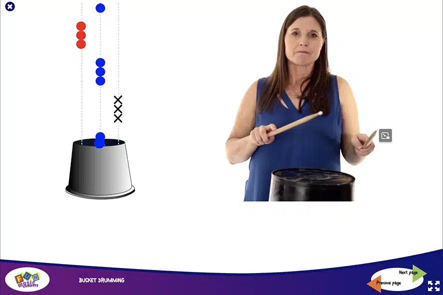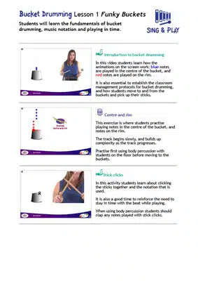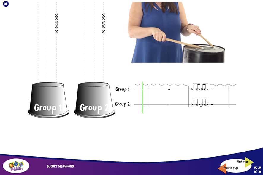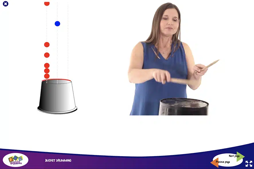 The Bucket Drumming Animations have been carefully designed to make bucket drumming easy and fun.