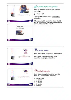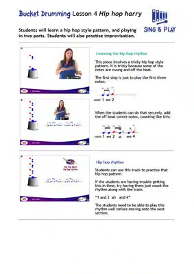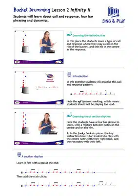 However, it isn’t a problem if the teacher doesn’t feel confident with the technical areas of bucket drumming. This program has video instruction to help!