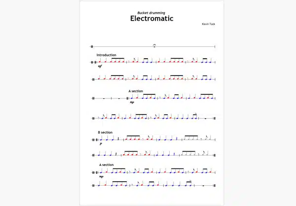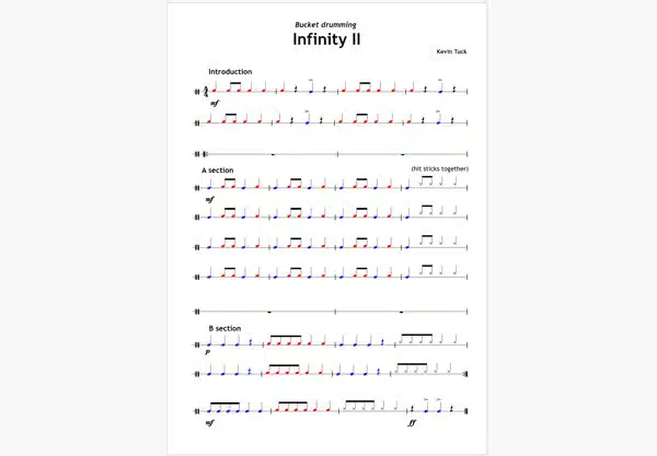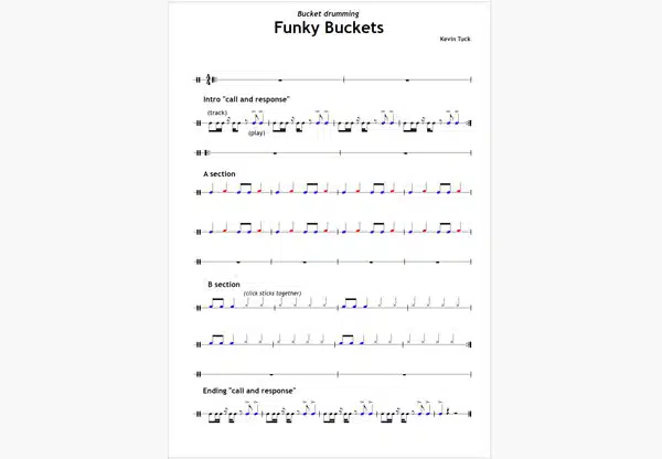 Content structured to prepare for 8 bucket drumming pieces