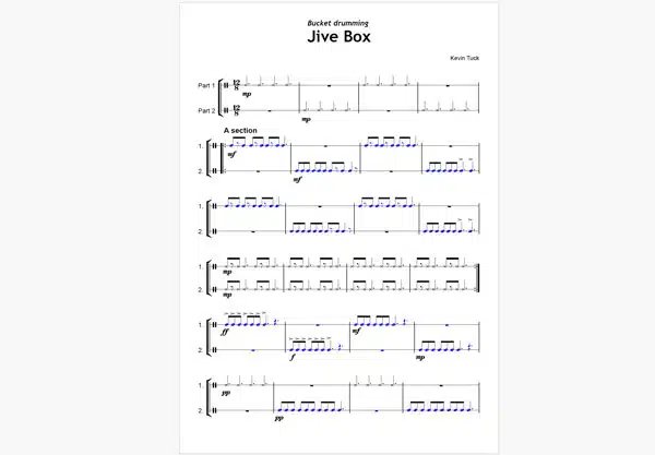 Eight Performance pieces form the structure of the bucket drumming system.