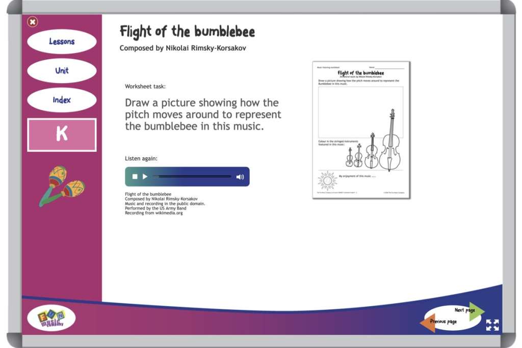 Students will complete a simple worksheet in each lesson with a drawing task related to the music they have heard.