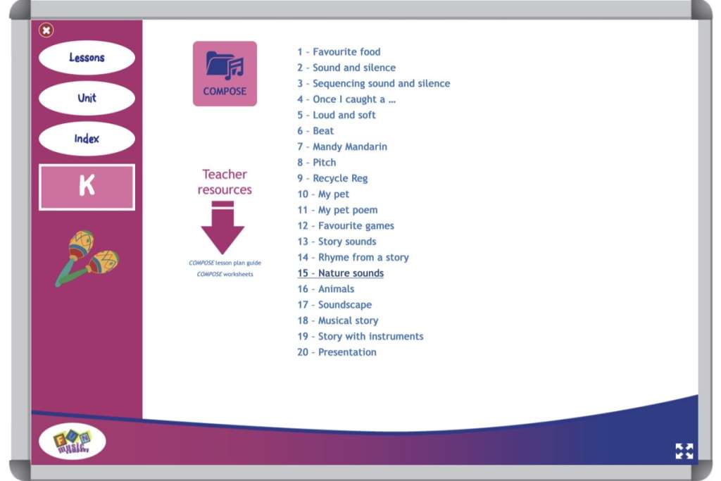 It does this by structuring activities around the four areas commonly found in every music curriculum in the world: SKILLS, SING & PLAY, COMPOSE and CONNECT.
