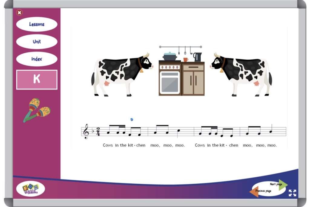 Of course, we know that children at this age often cannot read words, let alone read sheet music! Students will learn the songs through imitation and repetition at this age. However, the words and sheet music are presented on the screen so that children learn through exposure. The sooner children are exposed to words and notation, the better!