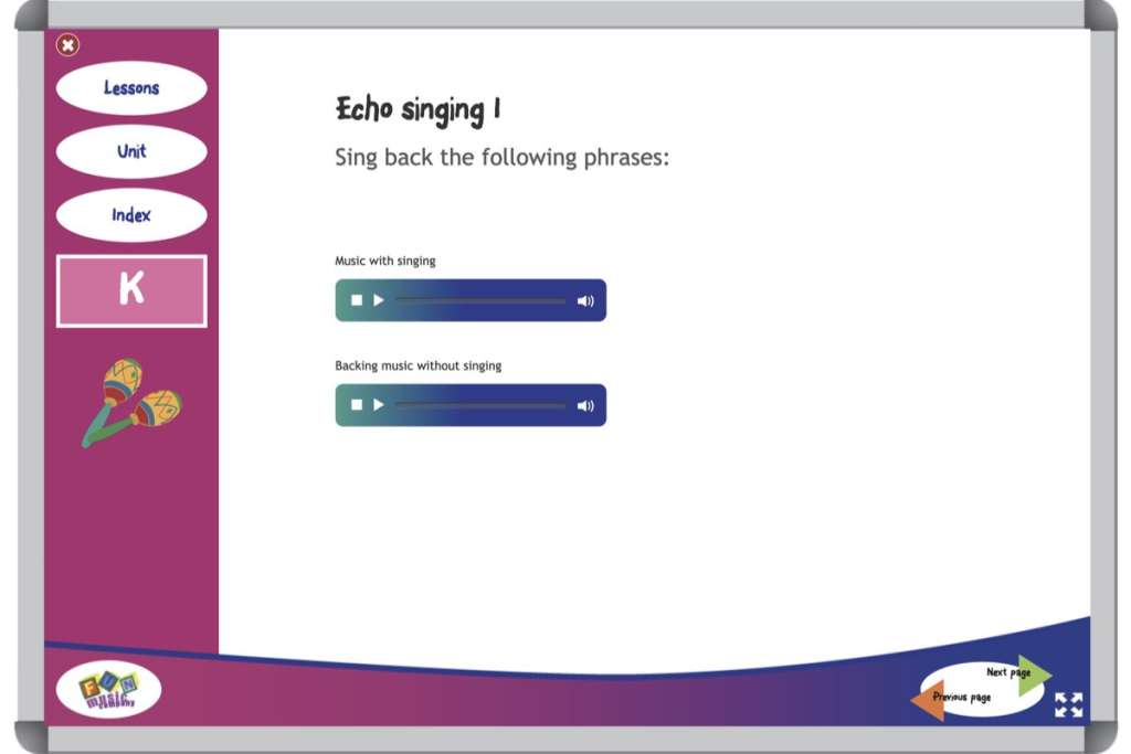 If you’re teaching this and you’re not a music teacher – it does not matter if you can’t sing! This program includes all tracks prerecorded, that you can echo with your class.
